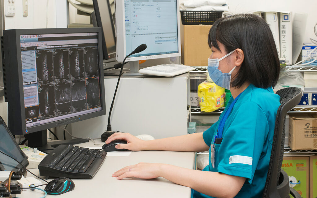 ドクターが迷うことなく診断でき、患者さんの迅速な治療につながっていく画像を提供することをこころがけています。そのために先輩が撮る画像や撮影技術を見て、日々勉強しています。一般的な写真と同じく、X線画像などにも撮影者の技量が反映されます。一度で患者さんの病気やけがの状態が明確に分かる画像を撮影できた時にはやりがいを感じます。